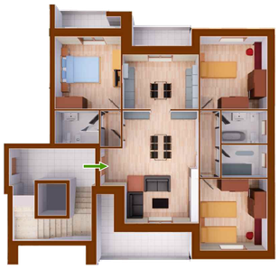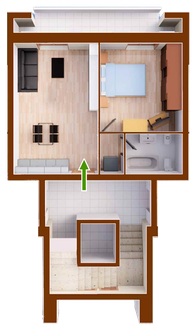NB: le previsioni progettuali e la disposizione dell'arredamento sono da considerarsi puramente indicative. Il venditore si riserva la facoltà di apportare modifiche al progetto per esigenze strutturali o di ordine tecnico realizzativo (cavedi tecnici, scarichi, ecc.) e/o per adeguamento ad eventuali norme di legge o di corretta esecuzione.